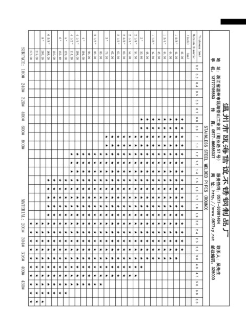 地 址:浙江省温州市瓯海茶山工业区(勤业路 57 手 机:13777795583 传 真:0577-86686337 号) 服务热线:0577-86681464 温州市瓯海信谊不锈钢制品厂 网 址:http://www.0577xy.net 联系人:吴先生 邮政编码:325000